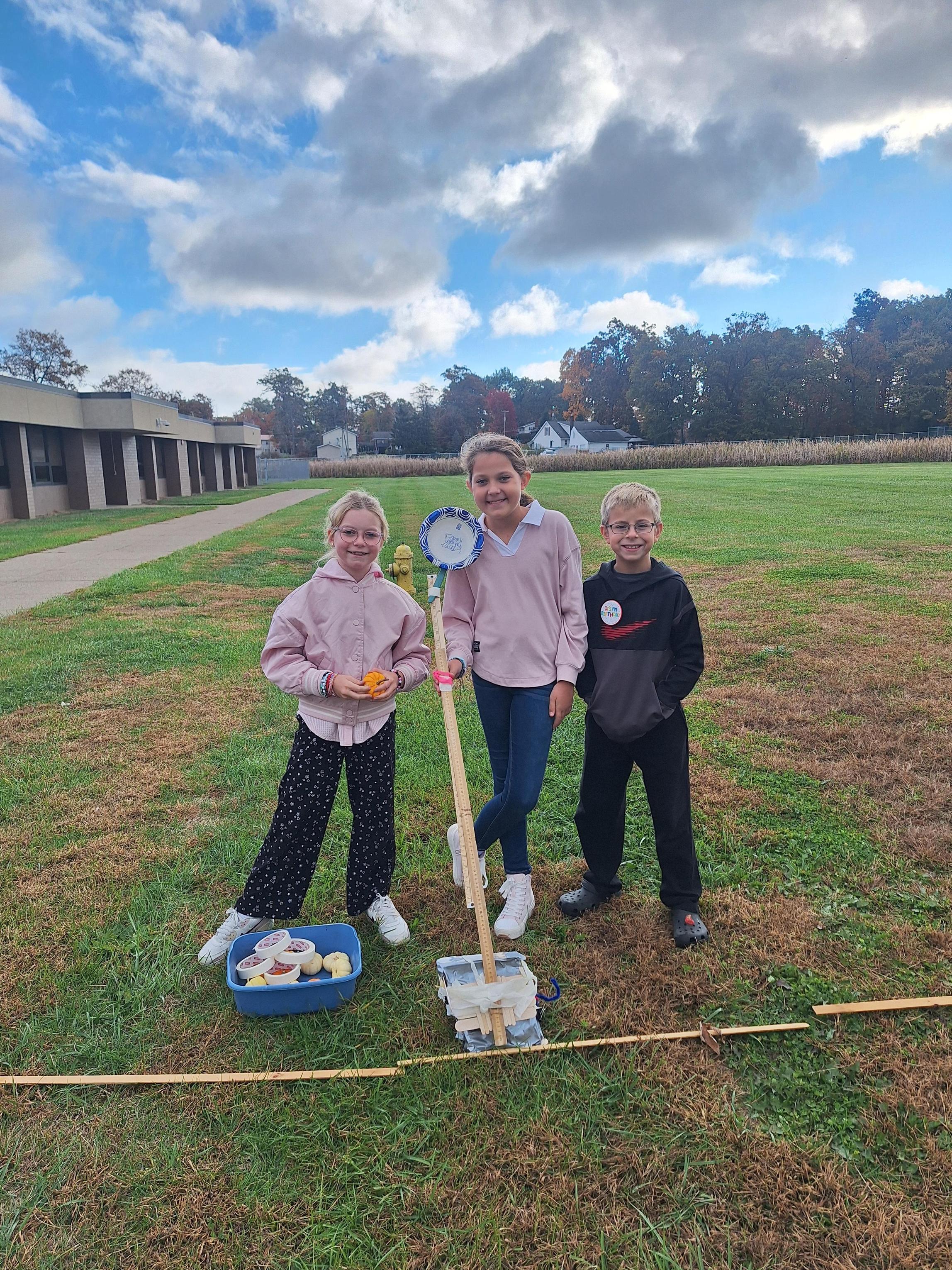 Mrs. Staples's 4th graders held the 2nd annual Punkin Chunkin contest in their science classes last week. It was a fun wrap-up to their forces and energy unit. The students spent the week designing and building catapults to launch mini pumpkins. They each got 3 launches during the competition.
