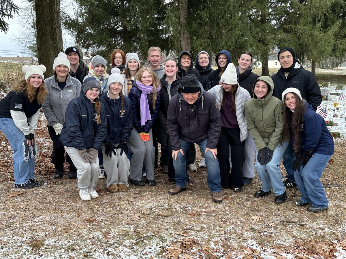 On Saturday, December 14th, students in the History Club, along with their advisor, Mr. Pflugh, participated in Wreaths Across America to pay tribute to fallen military service members. 542 wreaths were laid on the graves of military members at Saxonburg Memorial Cemetery. The taps were played by Knoch High School students Henry Hoffman and Caden Hassler.